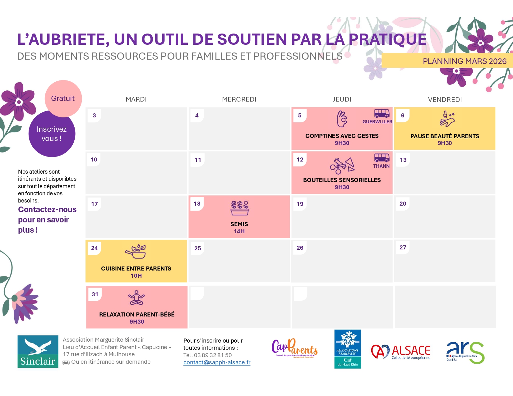 Aubriète – Agenda du mois de mars 2026 – Haut-Rhin (68)