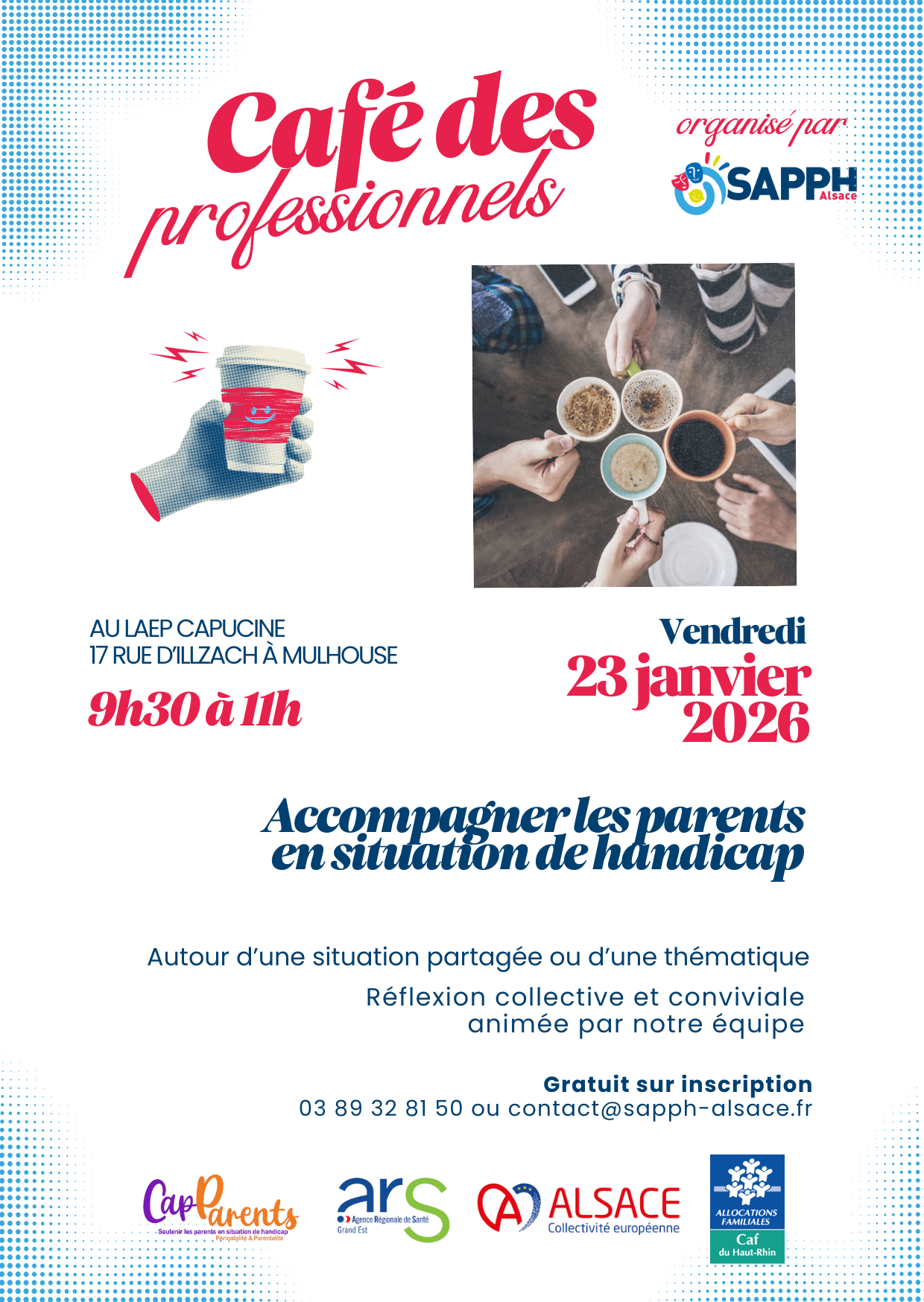 Le SAPPH Cap Parents Alsace organise le Café des Professionnels pour appréhender comment accompagner les parents en situation de handicap autour de situations partagées ou thématiques communes.