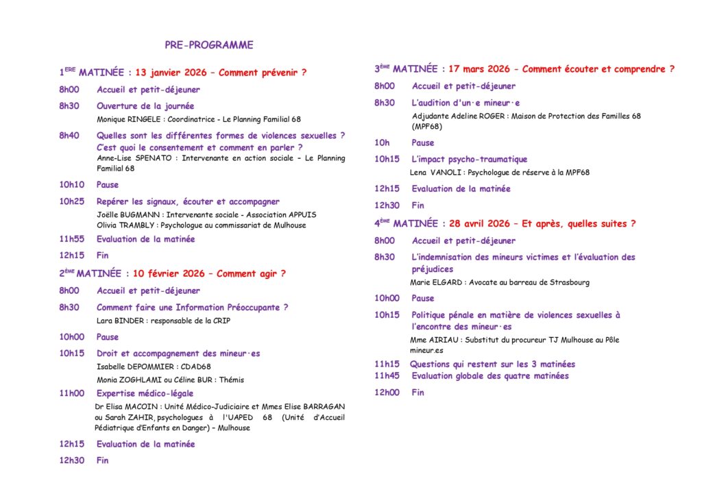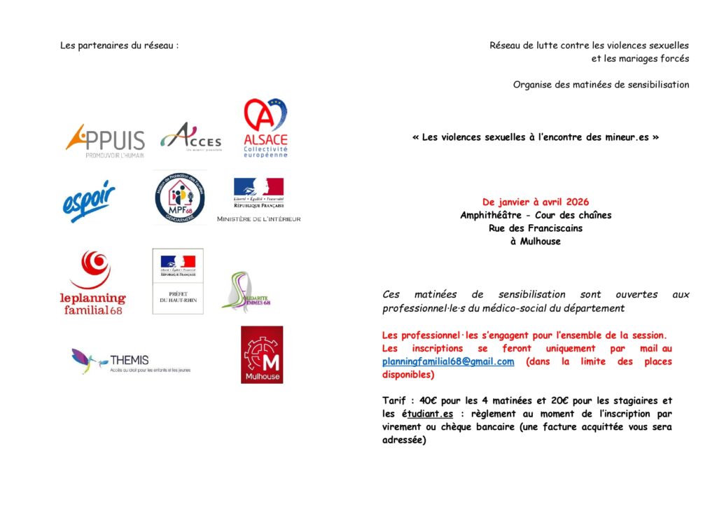 Le Planning Familial 68 organise des matinées de sensibilisation sur les violences sexuelles à l’encontre des mineur.es de janvier à avril 2026.
